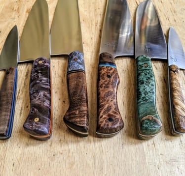 Ok, so I'm something of a wood hoarder. Lucky for you, this means I always have a wide variety of gorgeous handle materials on hand. I love to use burls and curly and spalted woods from all over, but thankfully Humboldt County has lots to offer locally.